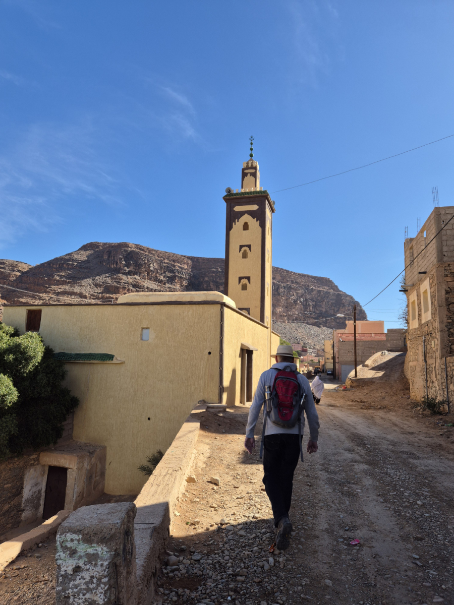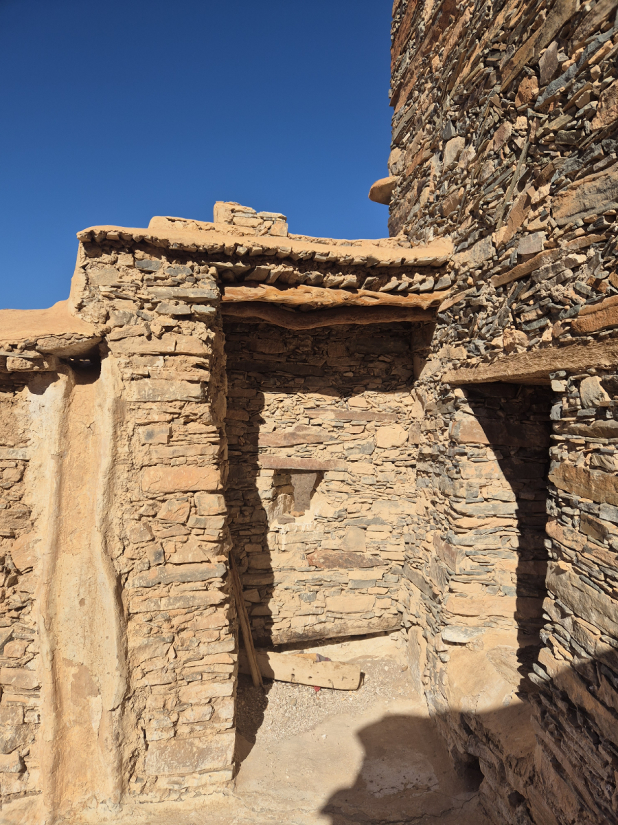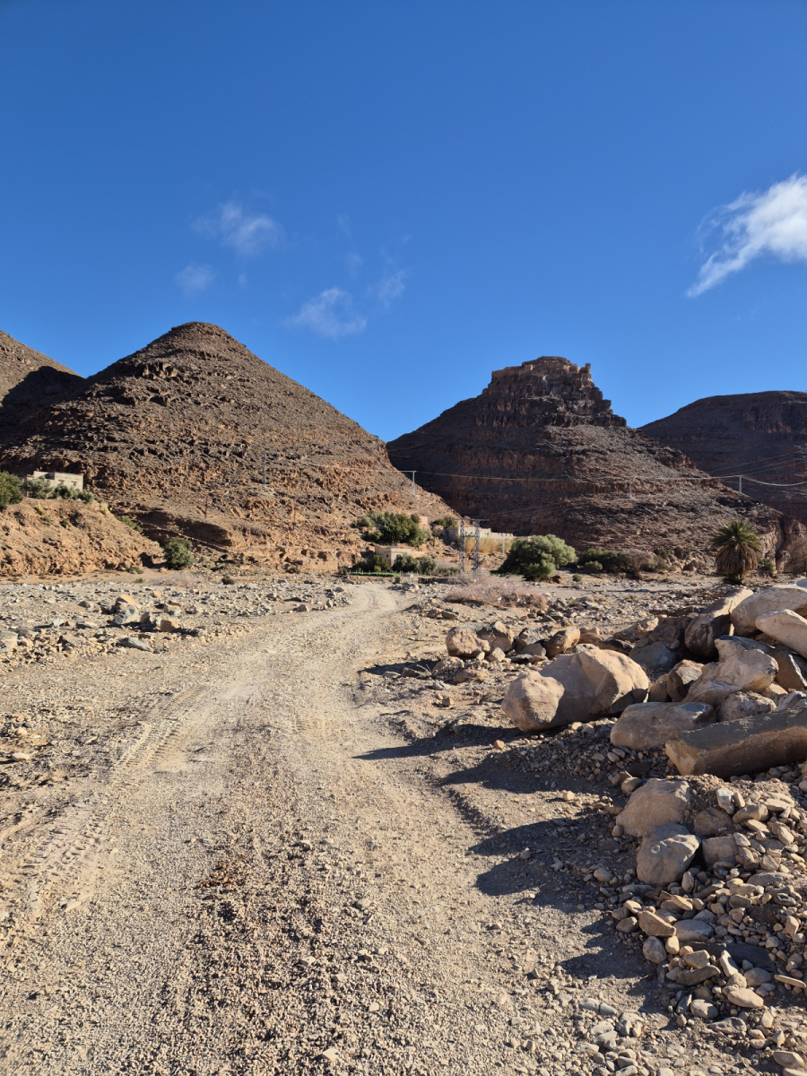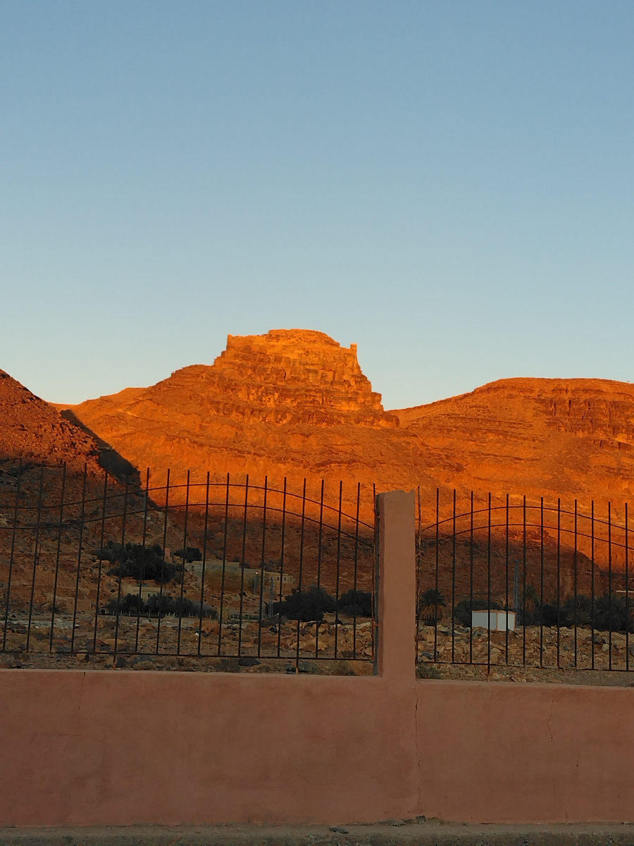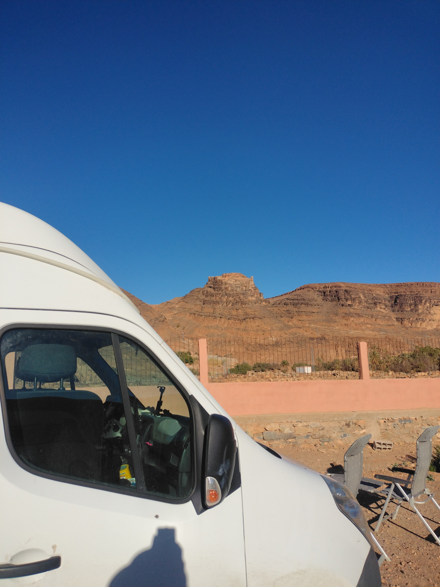 In einem der vorherigen Beiträge hatten wir schon mal kurz erwähnt, dass Agadir zwar eine Stadt in Marokko ist, aber das Wort eigentlich „befestigter Ort“ oder „Festung“ bedeutet. Historisch diente ein Agadir als Speicherfestung – ein gut gesichertes Lager für lebenswichtige Güter: Getreide, Olivenöl, Salz, Gewürze und manchmal auch Waffen. Im Falle eines Angriffs konnten die Anwohner sich selber und ihr Vieh ebenfalls in Sicherheit bringen. Der Agadir Id Aissa ist eine solche Speicherfestung und zwar eine sehr imposante. Er ist um die 800 Jahre alt, wurde aber 2007 restauriert und kann heute besichtigt werden. Zu Fuße des Agadirs liegt der Ort Amtoudi, die Straße dorthin ist eine Sackgasse. Es gibt einen Campingplatz, der vermutlich ausschließlich von den Touristen genutzt wird, die sich den Agadir anschauen wollen, bzw. in der naheliegenden Schlucht wandern wollen.