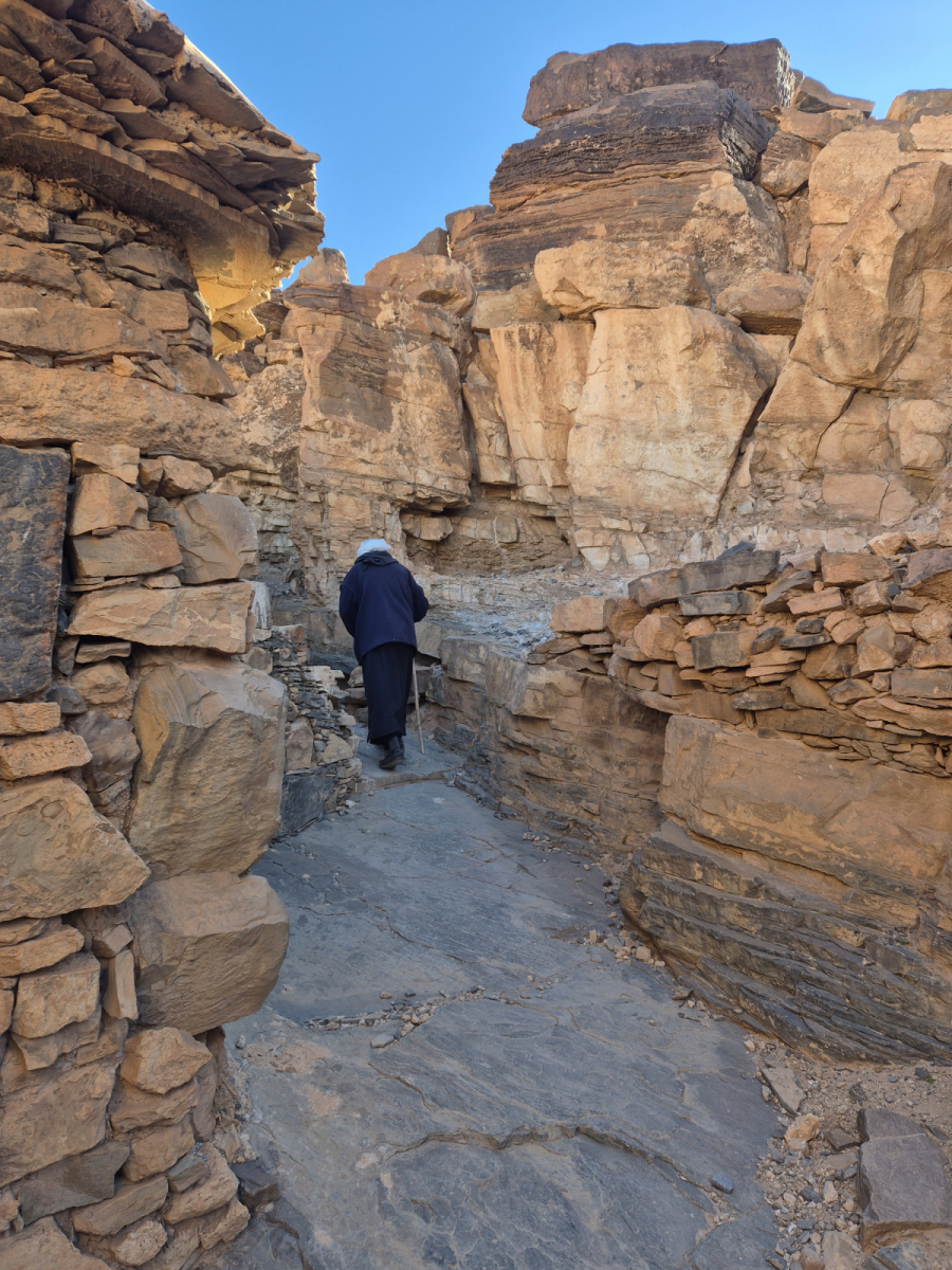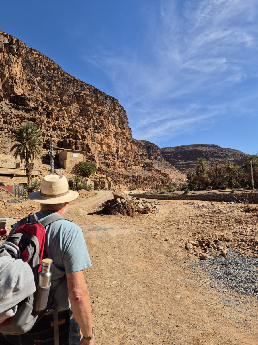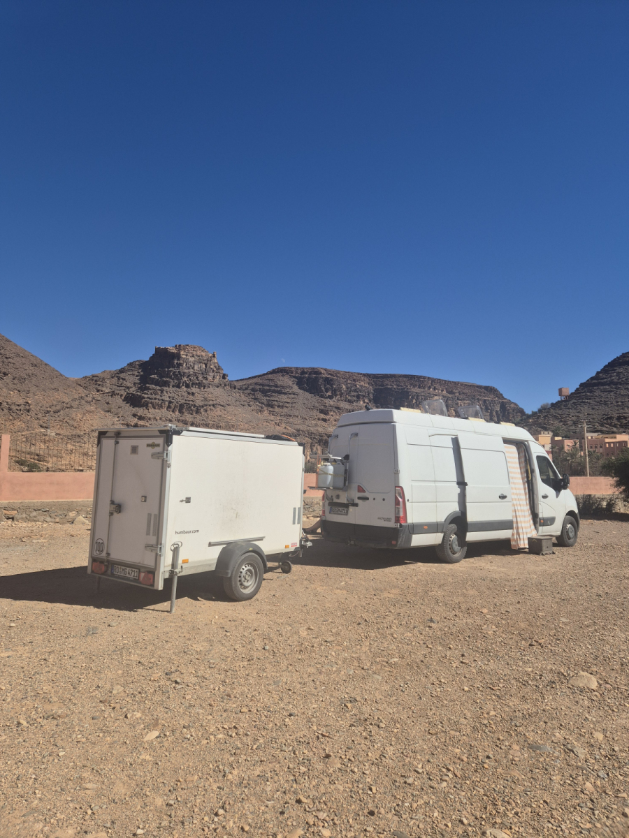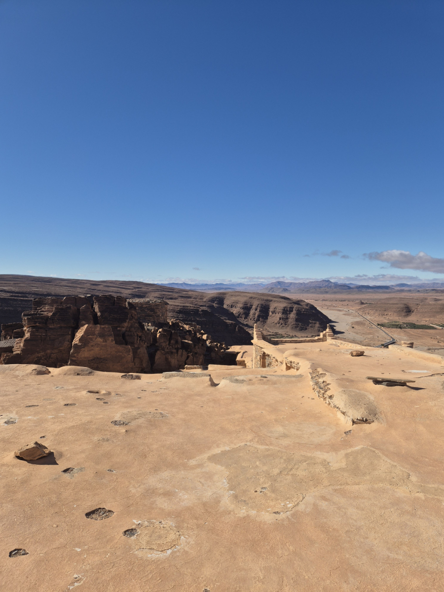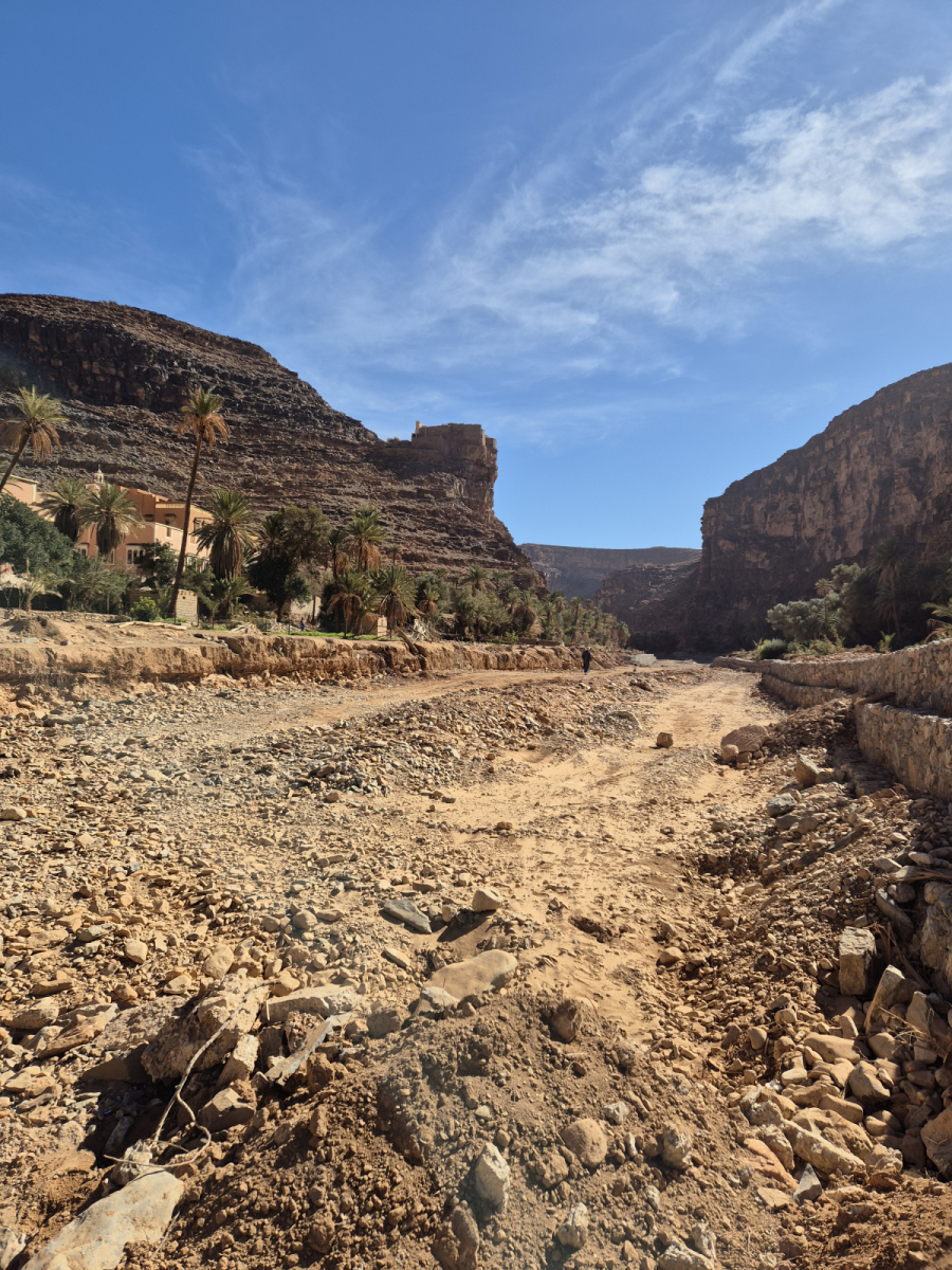 In einem der vorherigen Beiträge hatten wir schon mal kurz erwähnt, dass Agadir zwar eine Stadt in Marokko ist, aber das Wort eigentlich „befestigter Ort“ oder „Festung“ bedeutet. Historisch diente ein Agadir als Speicherfestung – ein gut gesichertes Lager für lebenswichtige Güter: Getreide, Olivenöl, Salz, Gewürze und manchmal auch Waffen. Im Falle eines Angriffs konnten die Anwohner sich selber und ihr Vieh ebenfalls in Sicherheit bringen. Der Agadir Id Aissa ist eine solche Speicherfestung und zwar eine sehr imposante. Er ist um die 800 Jahre alt, wurde aber 2007 restauriert und kann heute besichtigt werden. Zu Fuße des Agadirs liegt der Ort Amtoudi, die Straße dorthin ist eine Sackgasse. Es gibt einen Campingplatz, der vermutlich ausschließlich von den Touristen genutzt wird, die sich den Agadir anschauen wollen, bzw. in der naheliegenden Schlucht wandern wollen.