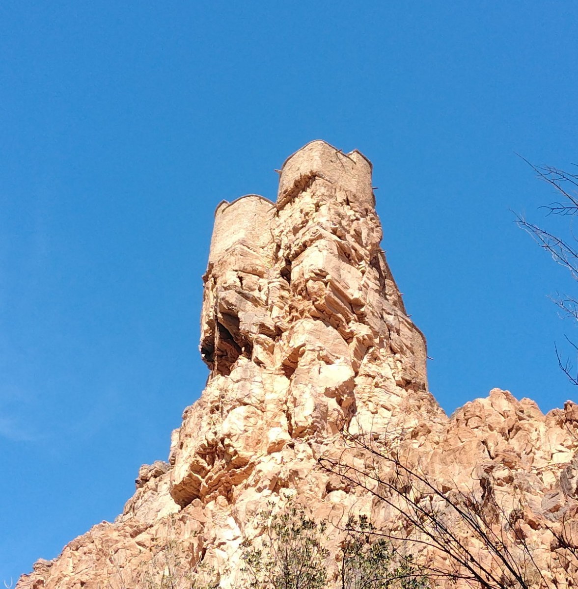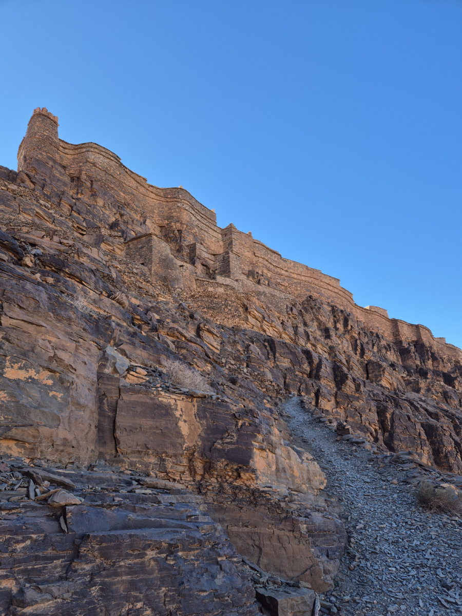 Einen Tag später ist es dann endlich soweit, wir machen uns auf den Weg. Seitlich des Berges führt ein kleiner schmaler Pfad in Serpentinen zur Festung. Die wird übrigens heute noch von einem Wächter bewacht. Die Festung ist abgeschlossen und wer sie besuchen will muss sich vorher anmelden. Der Wächter geht dann den Weg vom Dorf aus hoch und wartet oben auf die Besucher. Wir brauchen ungefähr 45 Minuten bis zur Festung, der Weg ist steil und daher anspruchsvoll, wir sind ganz schön außer Atem als wir oben ankommen.