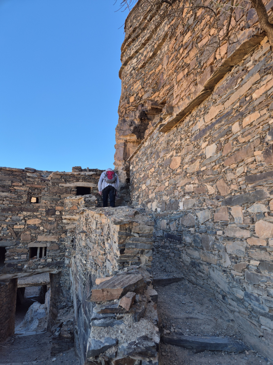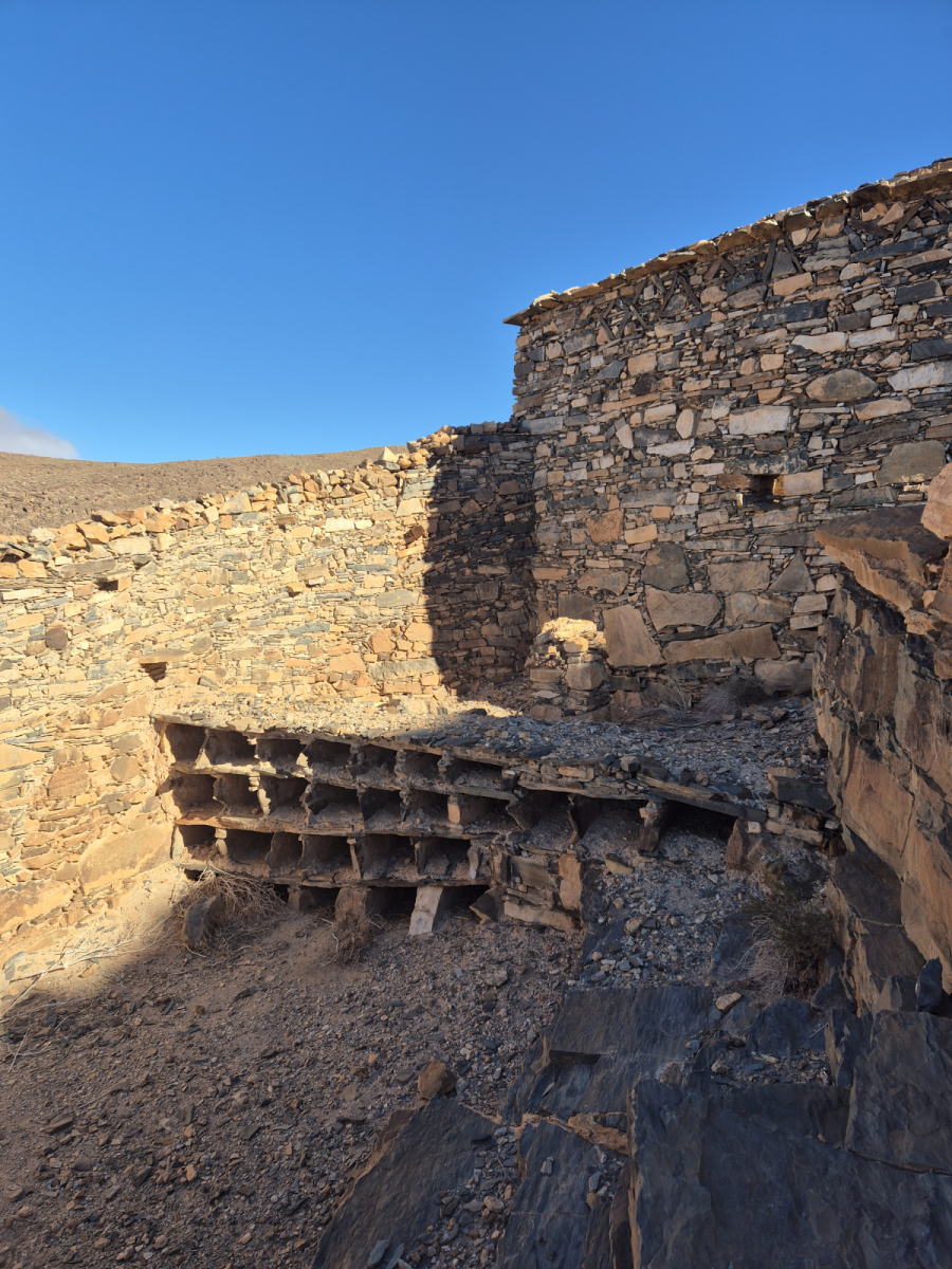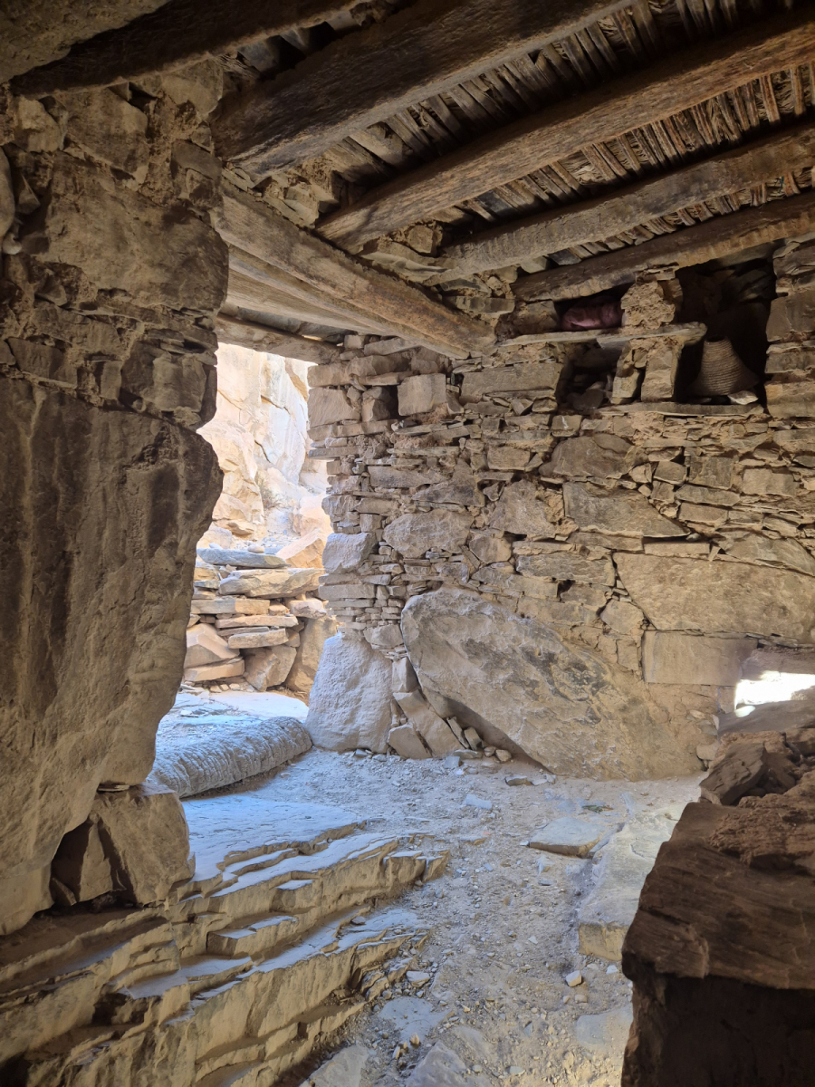 Das Teil ist echt beeindruckend, oben auf den Fels gebaut und gesichert. Jede Familie aus Amtoudi hatte dort ihre eigenen Räume. Über die Dächer der Gebäude wurde der Regen aufgefangen und über ein System von Rinnen in die Zisternen geführt. Überall sind die Lagerräume zu erkennen, teilweise konnten die nur über Leitern erreicht werden, alles sehr abenteuerlich.