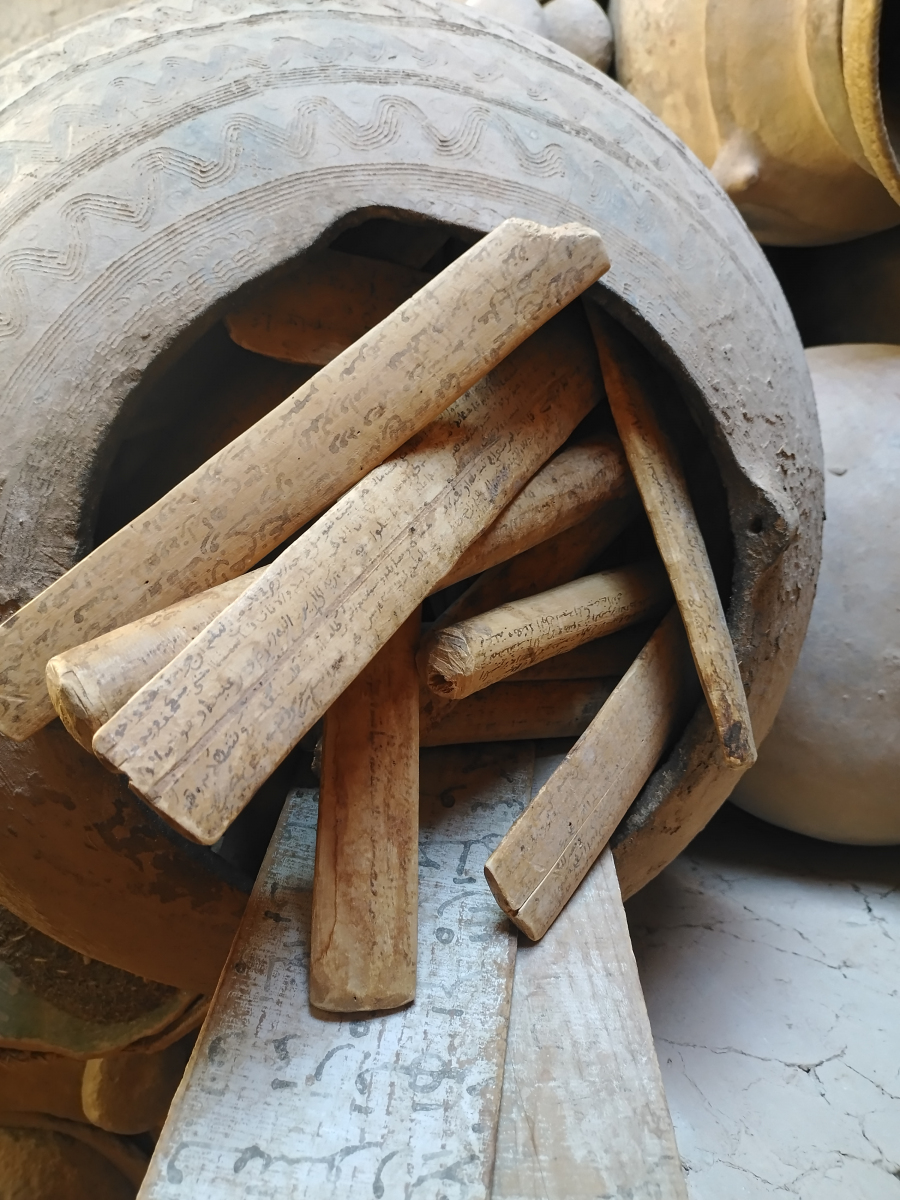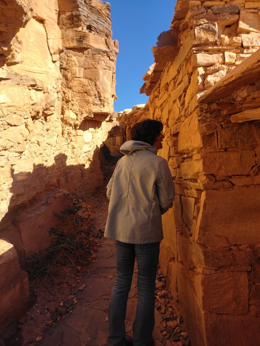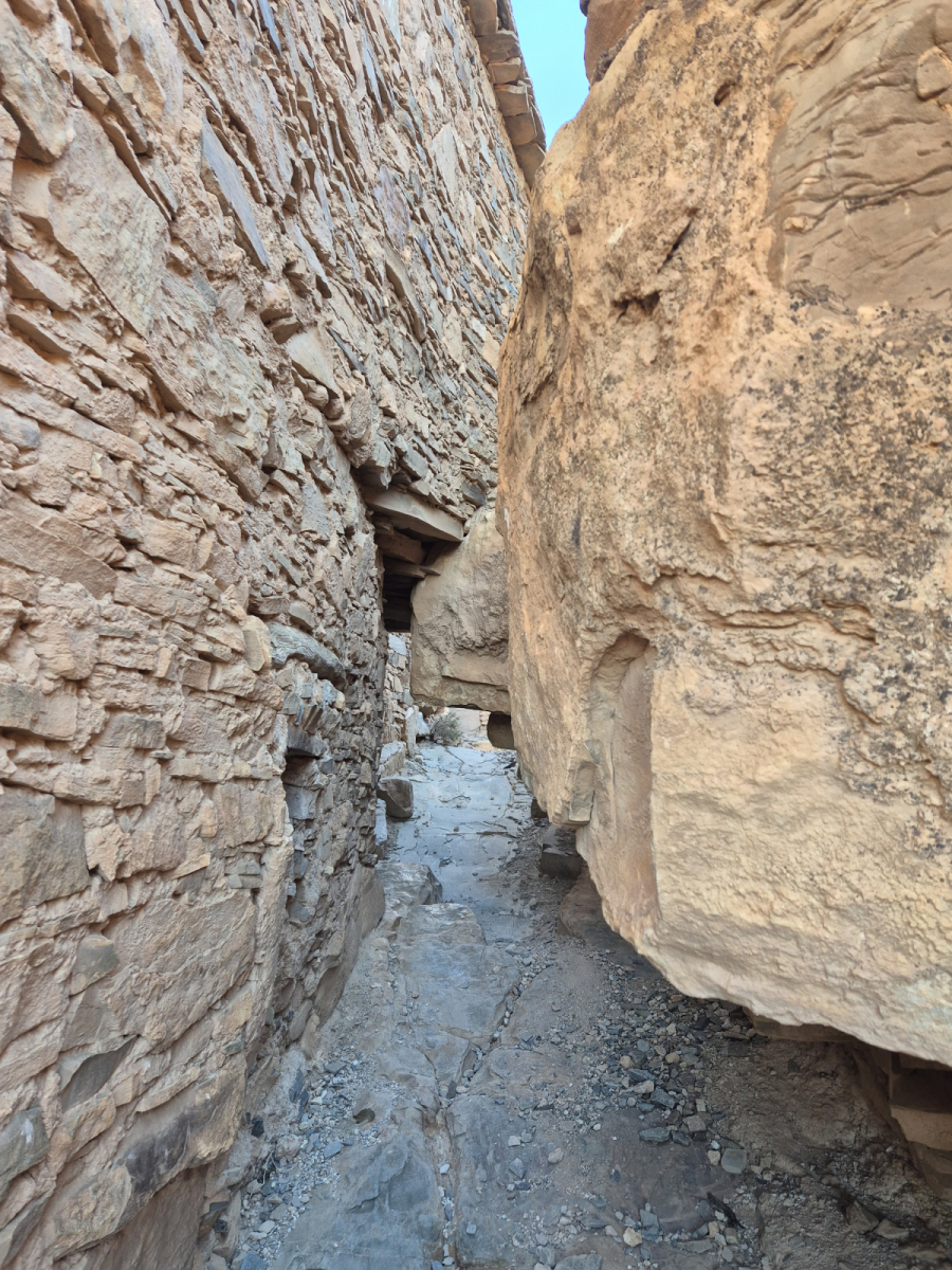 Das Teil ist echt beeindruckend, oben auf den Fels gebaut und gesichert. Jede Familie aus Amtoudi hatte dort ihre eigenen Räume. Über die Dächer der Gebäude wurde der Regen aufgefangen und über ein System von Rinnen in die Zisternen geführt. Überall sind die Lagerräume zu erkennen, teilweise konnten die nur über Leitern erreicht werden, alles sehr abenteuerlich.