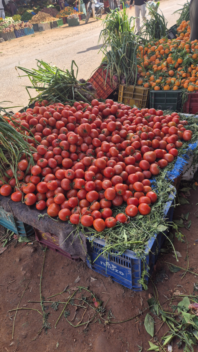 Der Ort selber ist vom Tourismus geprägt und zeigt sich so wie die meisten Orte am Meer, stark in die Jahre gekommene Uferpromenade, halb zerfallene Hotel- und Restaurant-Gebäude. Zwei drei Straßen von der Promenade weg beginnt dann das normale marokkanische Leben. Hier verbringen die Bewohner, in für uns Westeuropäer schwierig zu verstehenden Umständen ihr normales Leben. Wir besuchen den Wochenmarkt, der sich hier eine breite Straße entlang ausbreitet. Ähnlich wie schon in Sidi Ifni, interessant anzusehen. Wir kaufen in der bereits beschriebenen Manier frisches Obst und Gemüse ein.
