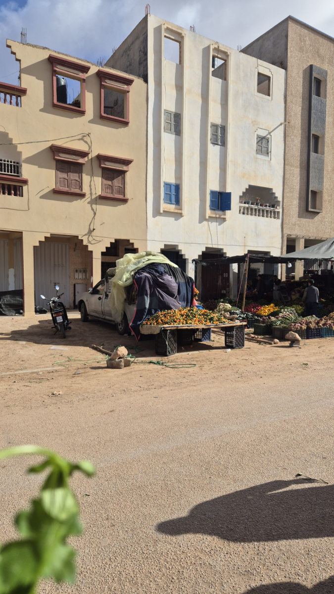 Der Ort selber ist vom Tourismus geprägt und zeigt sich so wie die meisten Orte am Meer, stark in die Jahre gekommene Uferpromenade, halb zerfallene Hotel- und Restaurant-Gebäude. Zwei drei Straßen von der Promenade weg beginnt dann das normale marokkanische Leben. Hier verbringen die Bewohner, in für uns Westeuropäer schwierig zu verstehenden Umständen ihr normales Leben. Wir besuchen den Wochenmarkt, der sich hier eine breite Straße entlang ausbreitet. Ähnlich wie schon in Sidi Ifni, interessant anzusehen. Wir kaufen in der bereits beschriebenen Manier frisches Obst und Gemüse ein.