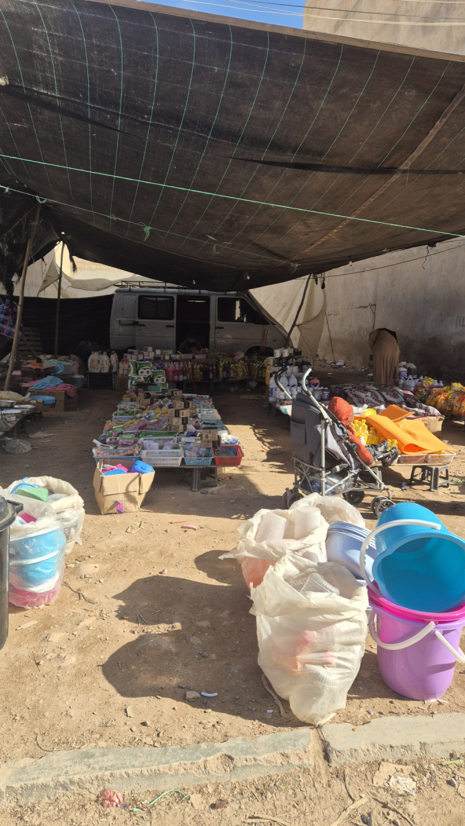 Der Ort selber ist vom Tourismus geprägt und zeigt sich so wie die meisten Orte am Meer, stark in die Jahre gekommene Uferpromenade, halb zerfallene Hotel- und Restaurant-Gebäude. Zwei drei Straßen von der Promenade weg beginnt dann das normale marokkanische Leben. Hier verbringen die Bewohner, in für uns Westeuropäer schwierig zu verstehenden Umständen ihr normales Leben. Wir besuchen den Wochenmarkt, der sich hier eine breite Straße entlang ausbreitet. Ähnlich wie schon in Sidi Ifni, interessant anzusehen. Wir kaufen in der bereits beschriebenen Manier frisches Obst und Gemüse ein.