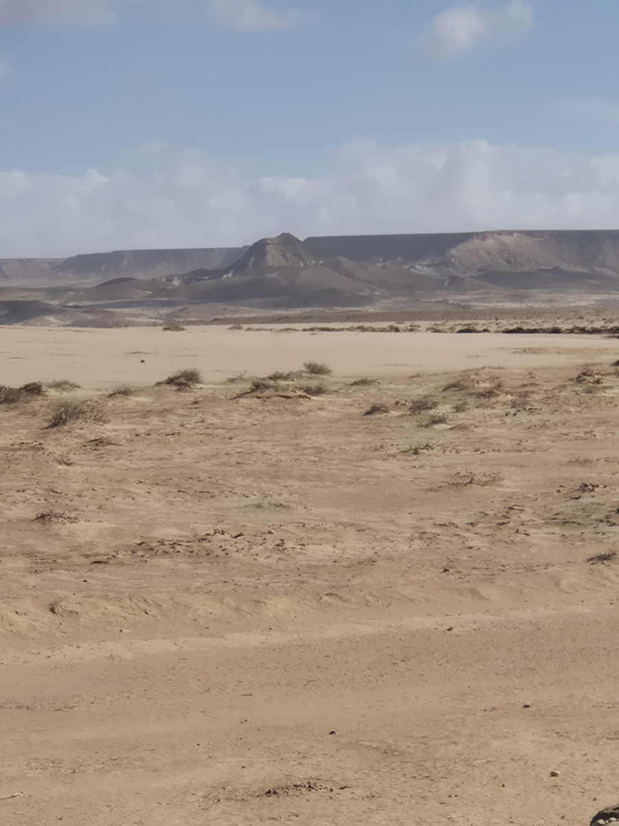 Der südlichste Punkt unserer diesjährigen Marokko-Reise bringt uns an den Rand der Wüste, Tan-Tan, bzw. El Ouatia. Auf dem letzten Drittel unserer Anreise von Sidi Ifni fahren wir durch eine Landschaft, die von Kakteen, kleinen Büschen, Geröll und Sand geprägt sind.