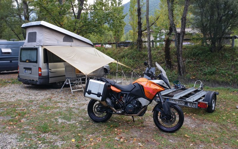 Naja das liegt daran, dass wir beide das Camping mit unserem alten Westfalia Camper (Transit Nugget 2004) lieben aber auch extrem gerne Moped fahren (KTM Adventure 1190, 2014). Beides wollen wir im Urlaub nicht missen!