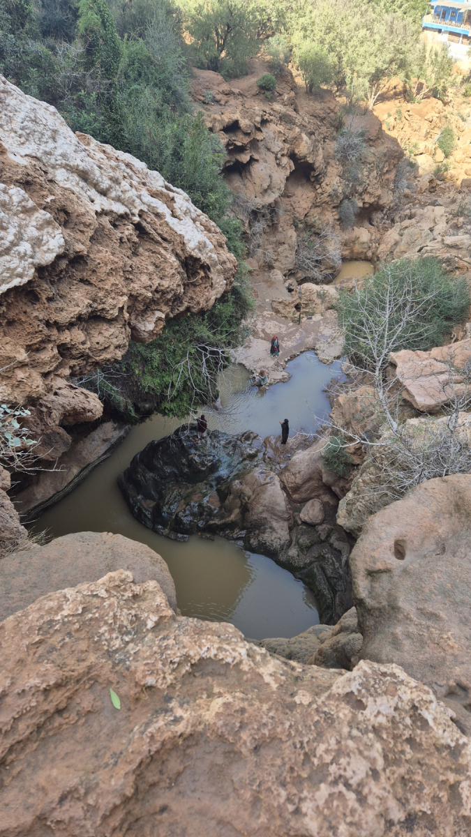 In diesem Jahr hat es in Marokko ungewöhnlich viel geregnet und einige Flüsse, die sonst trocken sind führen Wasser. Trotzdem haben wir das Pech, dass der eigentliche Wasserfall trocken ist. Am Parkplatz angekommen, werden wir von einem (selbsternannten) Parkwächter eingewiesen. Ein weiterer Mann spricht uns auf Englisch an und als er merkt, dass wir aus Deutschland kommen, spricht er mit uns ein gebrochenes Deutsch. Er erklärt uns, wie wir zu den Wasserfällen kommen würden, geht dann aber gleich ein Stück voraus. Und bevor wir uns versehen, haben wir einen (selbsternannten) Guide. Er heißt Mohammed und zeigt uns nicht nur den Wasserfall, sondern auch sein Dorf. Vor allem erklärt er uns sehr viel über sein Dorf, die Gegend und seine Familie. Natürlich kommen wir auf dem Weg durch das Dorf (zufällig) an dem einen oder anderen Laden vorbei, in dem Freunde von ihm selbstgemachte Souvenirs verkaufen. Aber alles nicht aufdringlich oder unangenehm. Am Ende hat die Tour über eine Stunde gedauert. Es war sehr interessant und lehrreich. Natürlich fragen wir ihn man am Ende der Tour, was er denn für die Führung haben möchte und geben ihm einen entsprechenden Betrag.