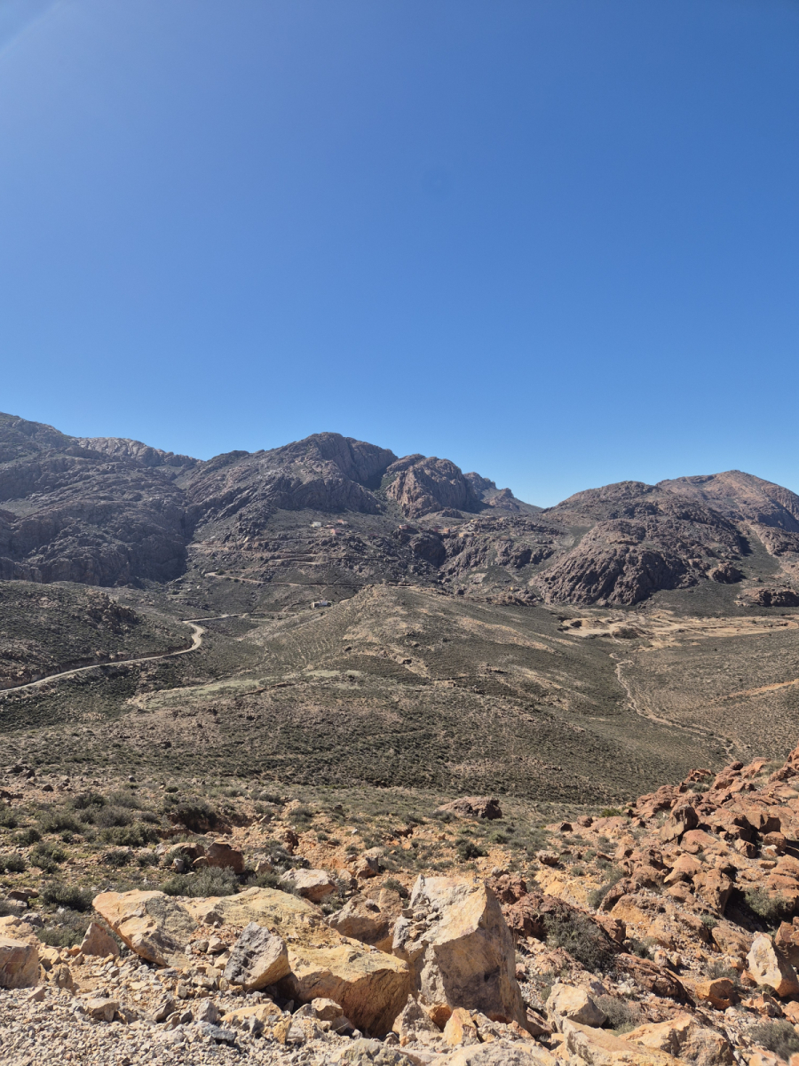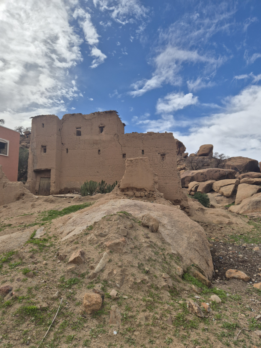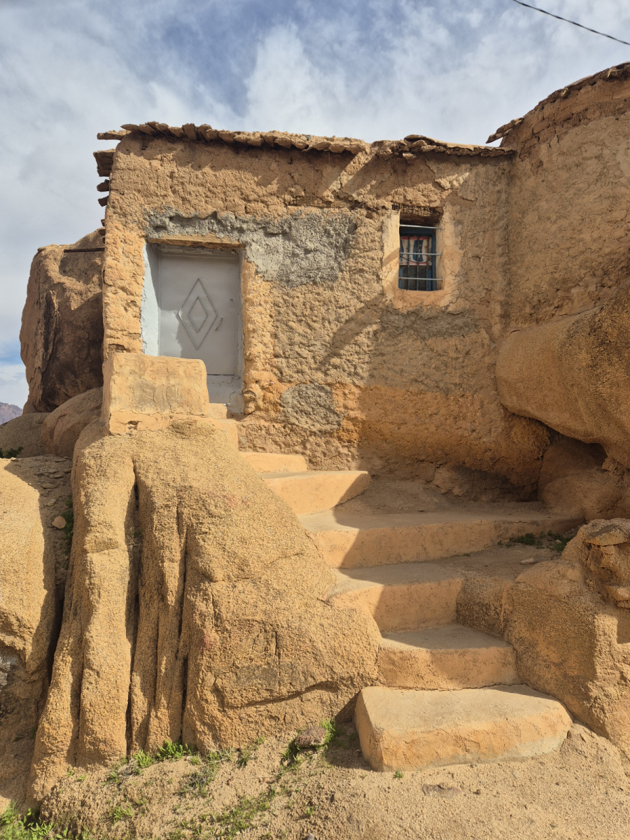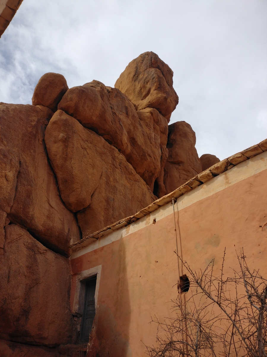 Auf dieser Wanderung laufen wir auch durch ein Berberdorf, in dem noch einige alte Gebäude übrig sind. Von weitem sind diese kaum von den Felsen zu unterscheiden. Klar, weil die das Gestein auch für den Bau der Häuser genutzt haben. An manchen Stellen stehen die Gebäude so nah unter den Felsen, dass man befürchten muss, dass diese in nächster Zeit von den Felsen erschlagen werden könnten.