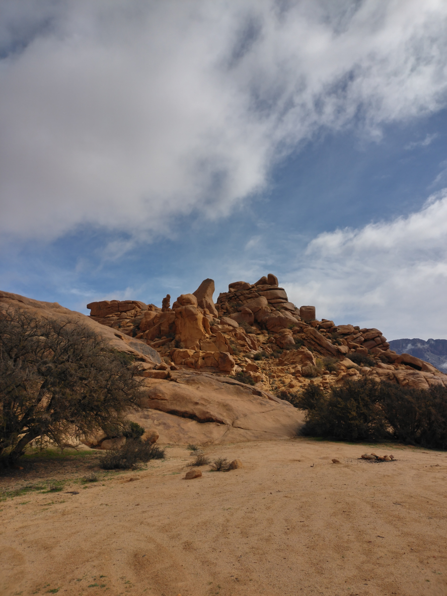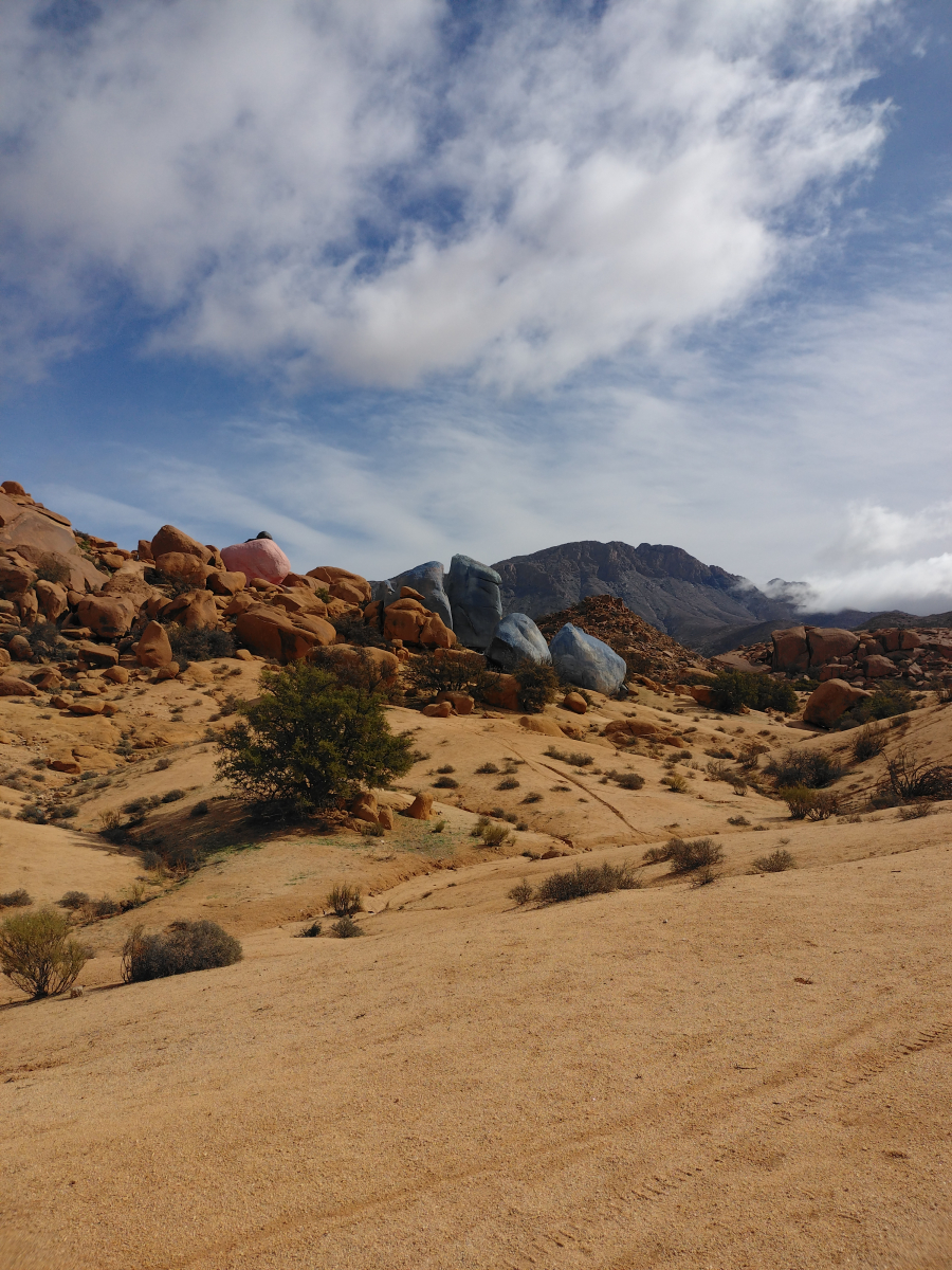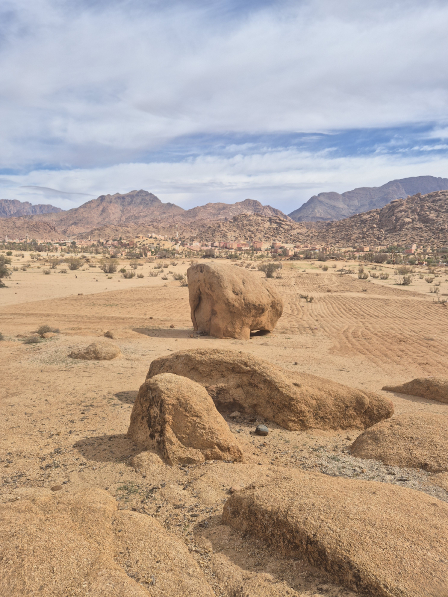 Wer schon mal die Bretagne in Frankreich bereist hat, wird nun sagen: „Moment mal, Granit Rose ist doch ein Küstenabschnitt in der Bretagne!“. Das ist korrekt, aber hier in Marokko, genau genommen im Anti-Atlas in der Nähe des Ortes Tafraoute gibt es diese Felsformation auch!