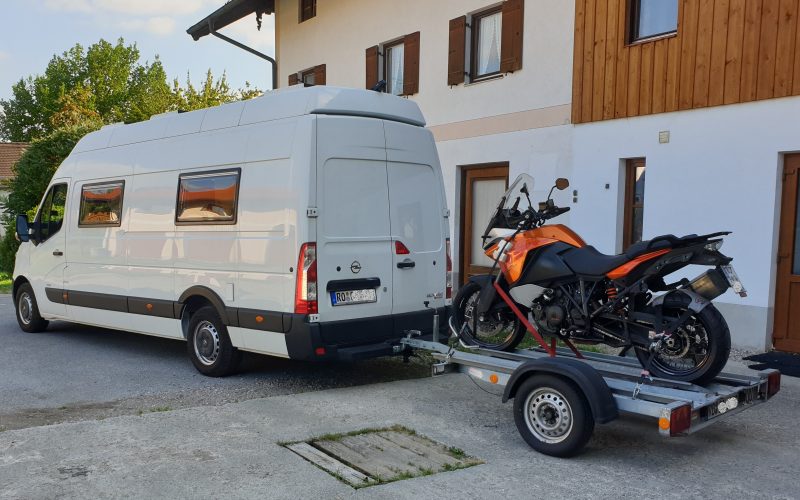 Der Transport von Motorrädern auf Anhänger ist an sich schon nicht ganz einfach. Will man das Moped in einem Wohnmobil-Urlaub mitnehmen und hängt das Teil an ein Wohnmobil, ergeben sich noch ein paar zusätzliche Herausforderungen. In diesem Beitrag will ich von unseren Erfahrungen aus 8 Jahren reisen mit Campingbus und Motorrad-Anhänger berichten.