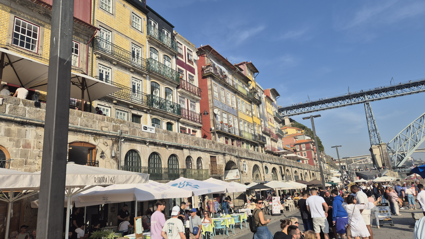 Man kann zwar mit den öffentlichen Verkehrsmitteln in die Stadt fahren, doch da die Beschaffung der Fahrkarten nicht ganz einfach ist, probieren wir auf Empfehlung mal was Neues (zumindest für uns). Wir bestellen uns einen Uber! Das ist erstaunlich einfach und angenehm, App runterladen, Account einrichten, ein Fahrzeug bestellen und los geht’s. Wir lassen uns vor dem Park abholen und uns zur imposanten Brücke „Ponte Luis I“ bringen. Von hier aus kommt man schnell auf die andere Seite und ist direkt in der Altstadt. Womit wir nicht gerechnet hatten war, dass wir nicht die einzigen Touristen in der Stadt waren.