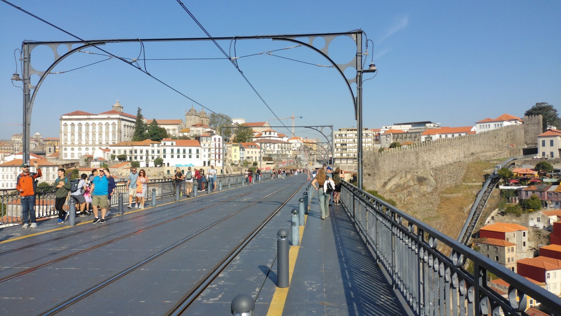Man kann zwar mit den öffentlichen Verkehrsmitteln in die Stadt fahren, doch da die Beschaffung der Fahrkarten nicht ganz einfach ist, probieren wir auf Empfehlung mal was Neues (zumindest für uns). Wir bestellen uns einen Uber! Das ist erstaunlich einfach und angenehm, App runterladen, Account einrichten, ein Fahrzeug bestellen und los geht’s. Wir lassen uns vor dem Park abholen und uns zur imposanten Brücke „Ponte Luis I“ bringen. Von hier aus kommt man schnell auf die andere Seite und ist direkt in der Altstadt. Womit wir nicht gerechnet hatten war, dass wir nicht die einzigen Touristen in der Stadt waren.