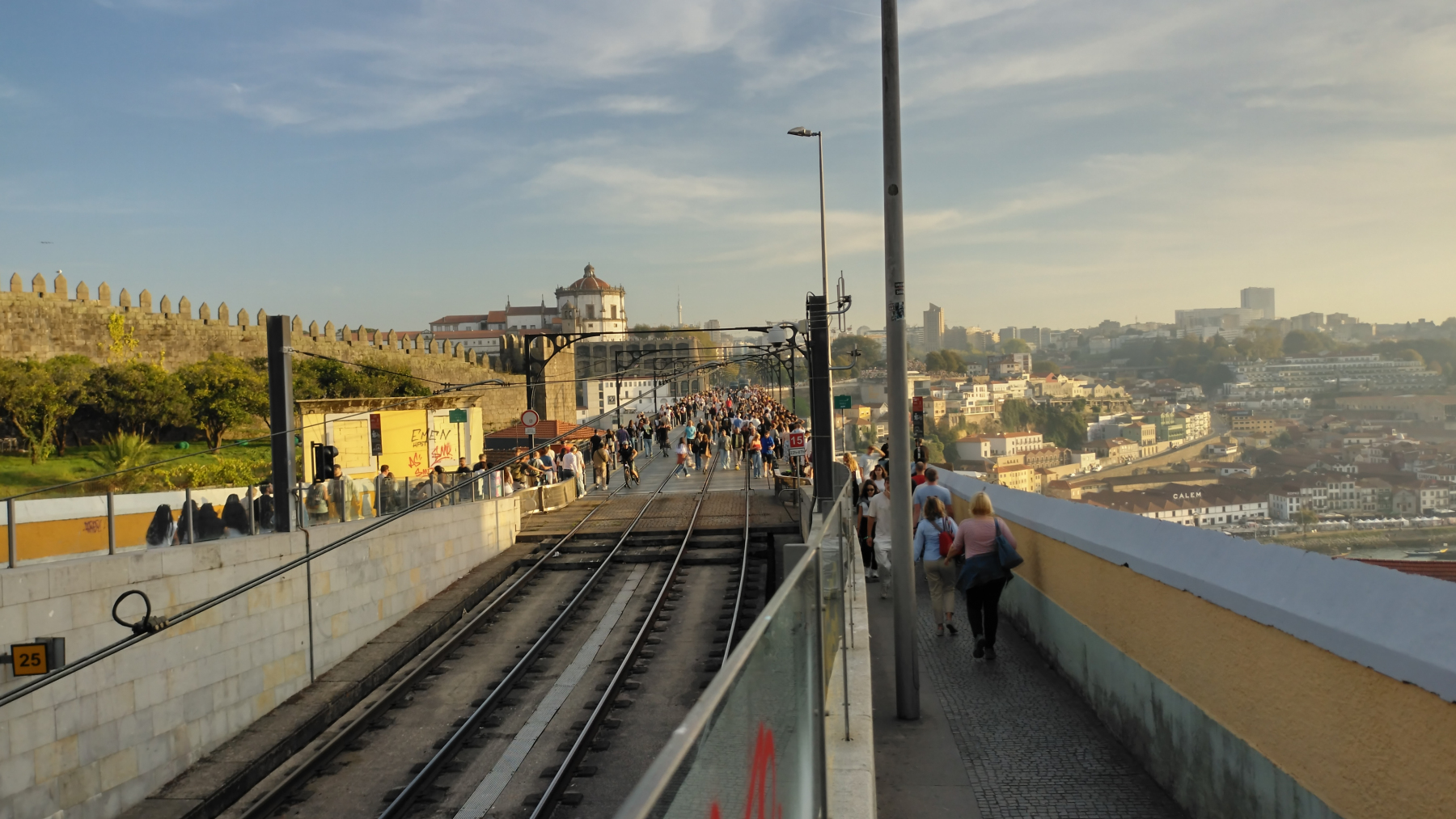 Man kann zwar mit den öffentlichen Verkehrsmitteln in die Stadt fahren, doch da die Beschaffung der Fahrkarten nicht ganz einfach ist, probieren wir auf Empfehlung mal was Neues (zumindest für uns). Wir bestellen uns einen Uber! Das ist erstaunlich einfach und angenehm, App runterladen, Account einrichten, ein Fahrzeug bestellen und los geht’s. Wir lassen uns vor dem Park abholen und uns zur imposanten Brücke „Ponte Luis I“ bringen. Von hier aus kommt man schnell auf die andere Seite und ist direkt in der Altstadt. Womit wir nicht gerechnet hatten war, dass wir nicht die einzigen Touristen in der Stadt waren.