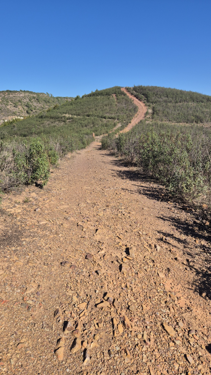 Auf der zweiten Mopedtour gab es dann wieder „alte Steine“, diesmal waren es Menhire, also prähistorische Monumente. Das sind einzelne aufrechtstehende Steine aus der Jungsteinzeit oder Bronzezeit, deren Bedeutung nicht ganz geklärt ist. In diesem Fall sind es vier Steine, die auf Hügel verteilt fast in einer Reihe stehen. Die Steine sind an einigen Stellen bearbeitet, man kann Linien und Punkte erkennen. An den Menhiren führt ein Wanderweg entlang, den wir abgegangen sind. Am Ende der Reihe hat man dann noch in Stein gehauene Gräber gefunden, die Necrópole da Pedreirinha, ebenfalls prähistorisch.