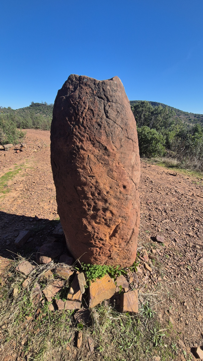 Auf der zweiten Mopedtour gab es dann wieder „alte Steine“, diesmal waren es Menhire, also prähistorische Monumente. Das sind einzelne aufrechtstehende Steine aus der Jungsteinzeit oder Bronzezeit, deren Bedeutung nicht ganz geklärt ist. In diesem Fall sind es vier Steine, die auf Hügel verteilt fast in einer Reihe stehen. Die Steine sind an einigen Stellen bearbeitet, man kann Linien und Punkte erkennen. An den Menhiren führt ein Wanderweg entlang, den wir abgegangen sind. Am Ende der Reihe hat man dann noch in Stein gehauene Gräber gefunden, die Necrópole da Pedreirinha, ebenfalls prähistorisch.