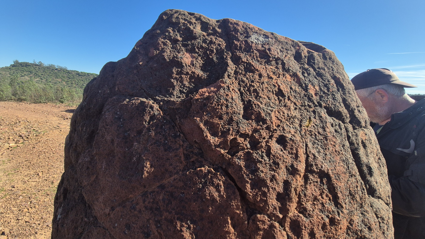 Auf der zweiten Mopedtour gab es dann wieder „alte Steine“, diesmal waren es Menhire, also prähistorische Monumente. Das sind einzelne aufrechtstehende Steine aus der Jungsteinzeit oder Bronzezeit, deren Bedeutung nicht ganz geklärt ist. In diesem Fall sind es vier Steine, die auf Hügel verteilt fast in einer Reihe stehen. Die Steine sind an einigen Stellen bearbeitet, man kann Linien und Punkte erkennen. An den Menhiren führt ein Wanderweg entlang, den wir abgegangen sind. Am Ende der Reihe hat man dann noch in Stein gehauene Gräber gefunden, die Necrópole da Pedreirinha, ebenfalls prähistorisch.