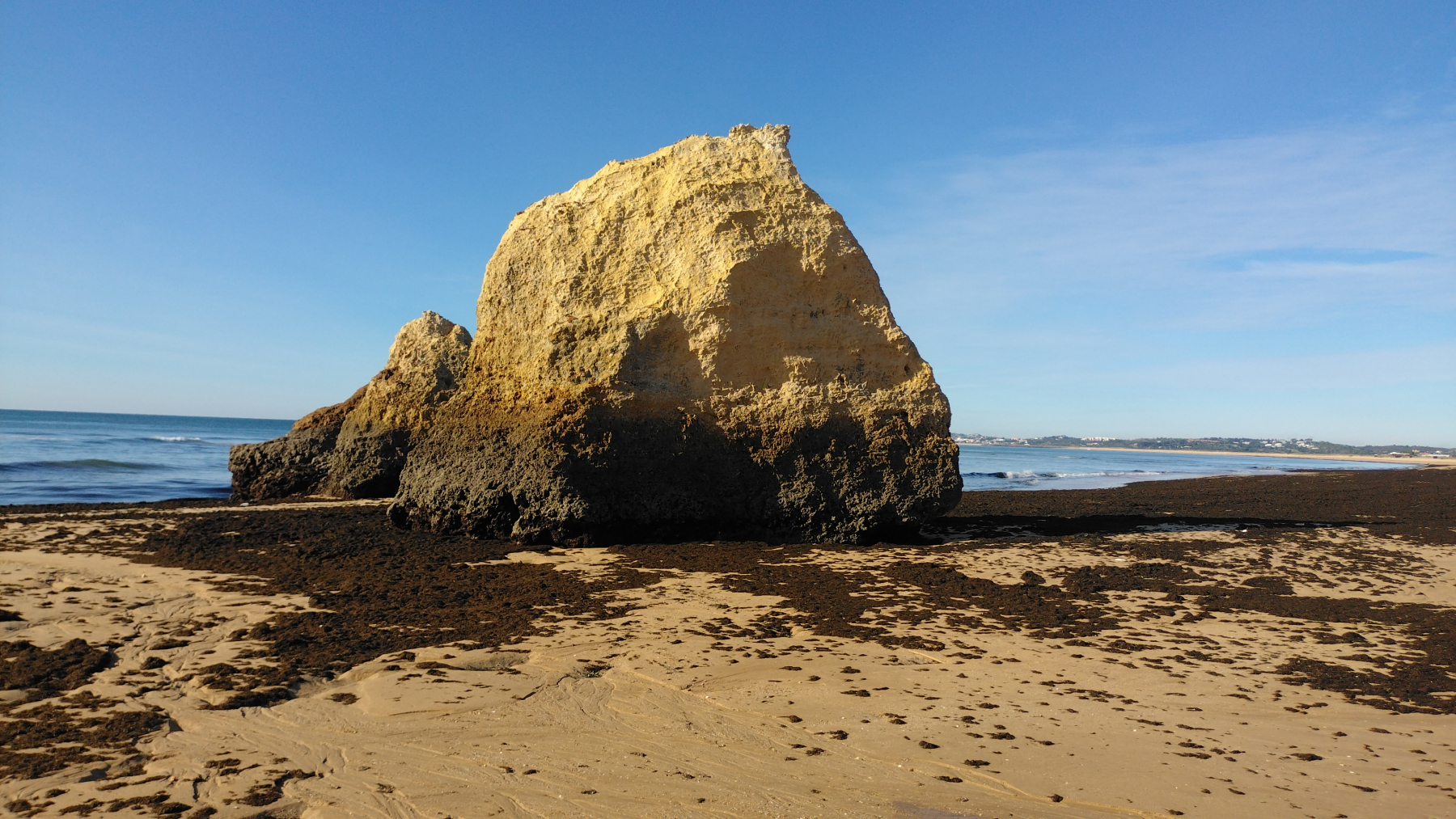 Am Strand von Alvor (unserem Campingplatz) liegen die Três Irmãos (Drei Brüder). Das sind markante Felsformationen, so wie es sie hier an der Felsküste sehr häufig gibt. Wenn Ebbe ist, werden Felsdurchgänge und Buchten freigelegt, die sonst nur mit dem Boot zu erreichen sind. Entlang der Küste gibt es einen Wanderweg, den wir teilweise gegangen sind. Dabei haben wir wirklich skurrile Dinge gesehen. Wir hoffen, dass unsere Fotos die Eindrücke halbwegs rüber bringen.