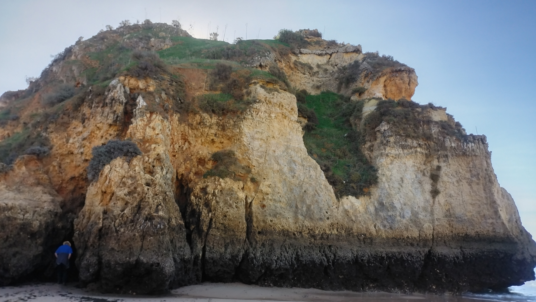 Am Strand von Alvor (unserem Campingplatz) liegen die Três Irmãos (Drei Brüder). Das sind markante Felsformationen, so wie es sie hier an der Felsküste sehr häufig gibt. Wenn Ebbe ist, werden Felsdurchgänge und Buchten freigelegt, die sonst nur mit dem Boot zu erreichen sind. Entlang der Küste gibt es einen Wanderweg, den wir teilweise gegangen sind. Dabei haben wir wirklich skurrile Dinge gesehen. Wir hoffen, dass unsere Fotos die Eindrücke halbwegs rüber bringen.