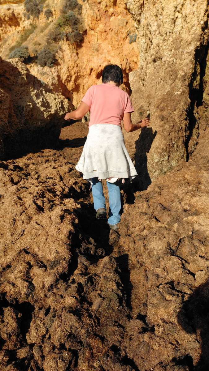 Am Strand von Alvor (unserem Campingplatz) liegen die Três Irmãos (Drei Brüder). Das sind markante Felsformationen, so wie es sie hier an der Felsküste sehr häufig gibt. Wenn Ebbe ist, werden Felsdurchgänge und Buchten freigelegt, die sonst nur mit dem Boot zu erreichen sind. Entlang der Küste gibt es einen Wanderweg, den wir teilweise gegangen sind. Dabei haben wir wirklich skurrile Dinge gesehen. Wir hoffen, dass unsere Fotos die Eindrücke halbwegs rüber bringen.