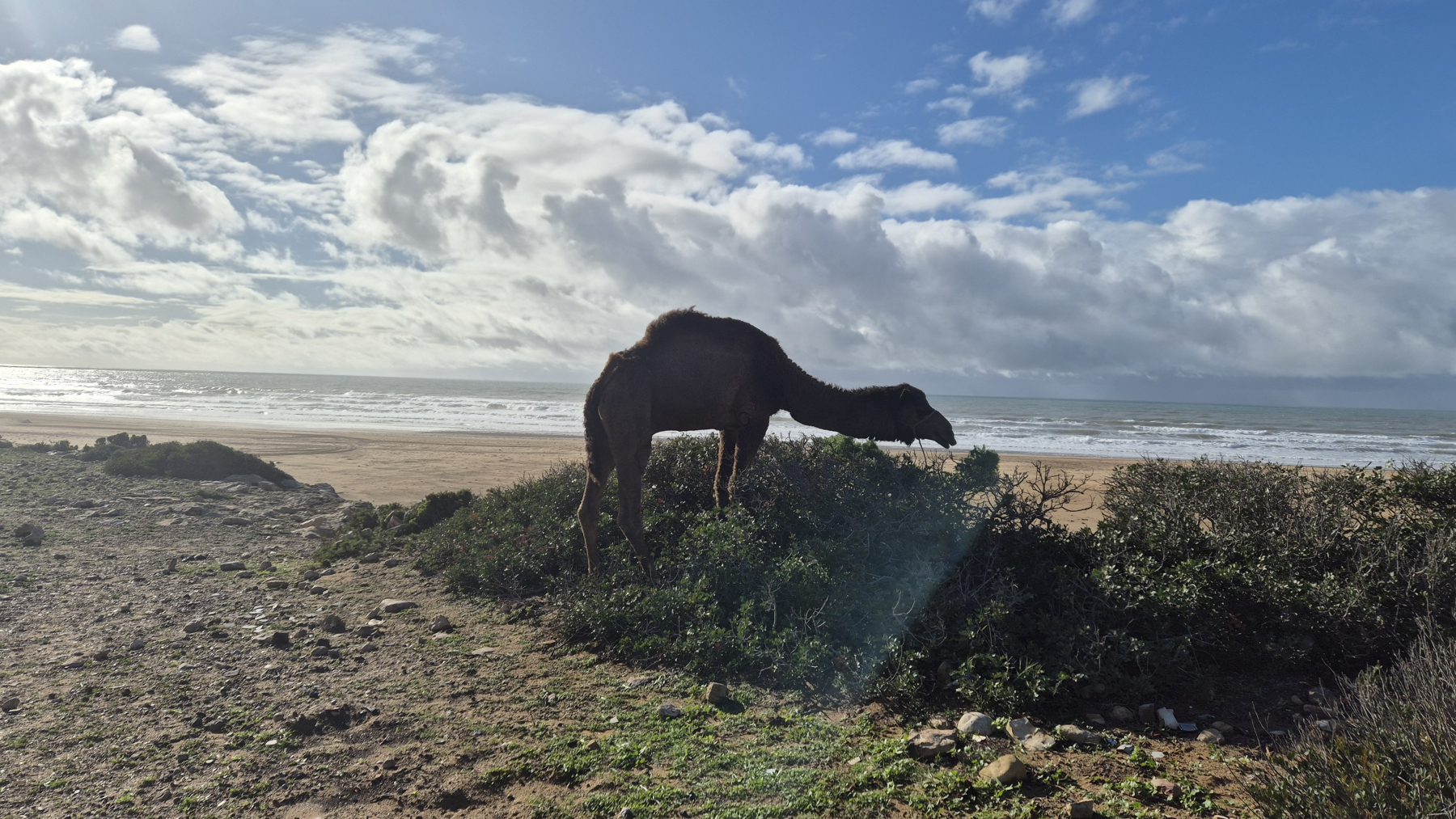 Wieder ein Stück weiter in den Süden. Unser nächster Campingplatz liegt in Sidi Kaouki, einem ehemaligen Fischerdorf, das in den letzten Jahren zum Hotspot für Wellenreiter geworden ist. Dementsprechend hat sich der Ort auch entwickelt. Alles hat sich auf die neue „Einnahmequelle“ eingestellt. Surfshops, Bretterverleih, hippe Cafés, Kamel- und Eselreiten am Strand, Quadverleih. Alles was das Touristenherz begehrt 😉
