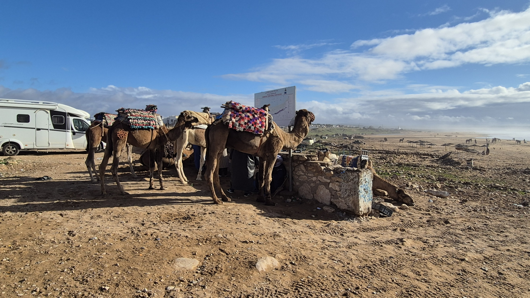 Wieder ein Stück weiter in den Süden. Unser nächster Campingplatz liegt in Sidi Kaouki, einem ehemaligen Fischerdorf, das in den letzten Jahren zum Hotspot für Wellenreiter geworden ist. Dementsprechend hat sich der Ort auch entwickelt. Alles hat sich auf die neue „Einnahmequelle“ eingestellt. Surfshops, Bretterverleih, hippe Cafés, Kamel- und Eselreiten am Strand, Quadverleih. Alles was das Touristenherz begehrt 😉