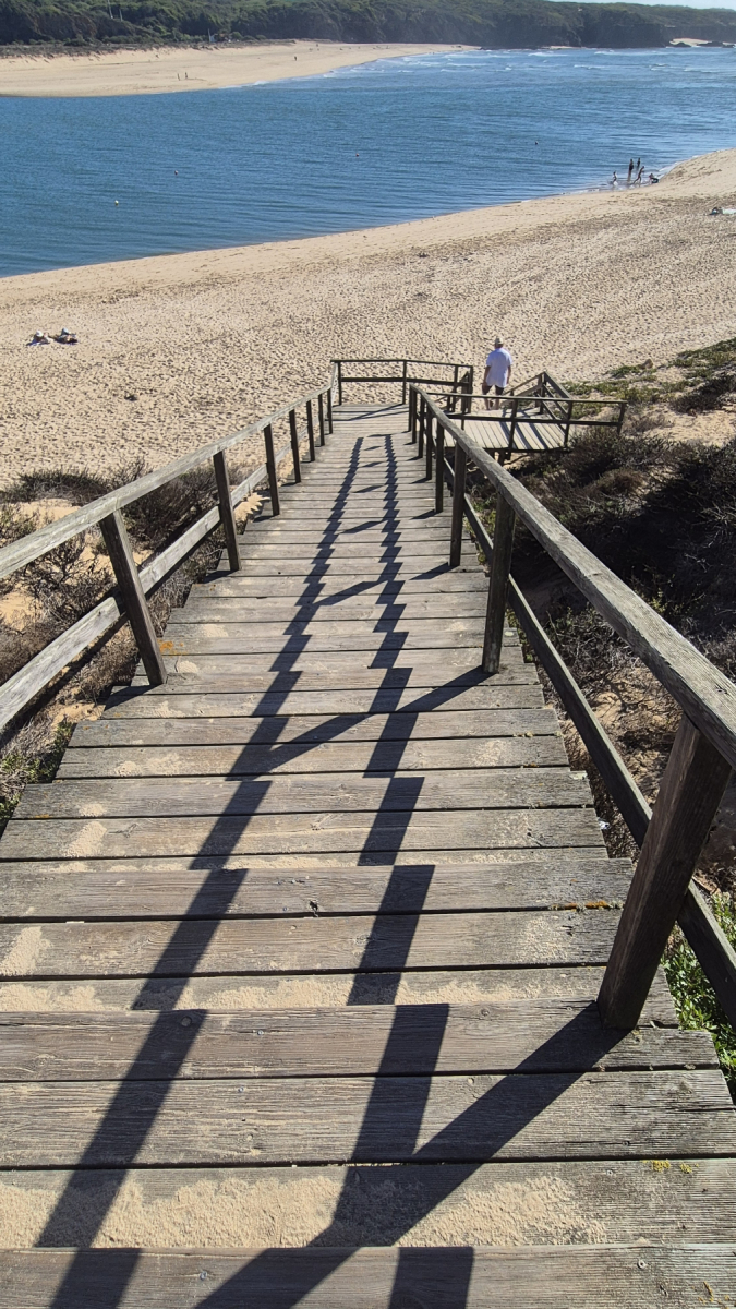 Praia ist das portugiesische Wort für Strand. Die Strände sind an diesem Teil der Westküste immer nur Einschnitte in die schroffen Felsen und nicht selten nur über steile Treppen oder gar Leitern zu erreichen.